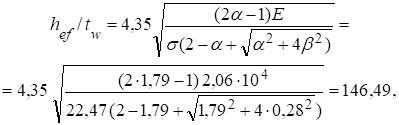 х = 2,14 > 2,0 предельная гибкость стенки определяется по формуле