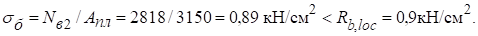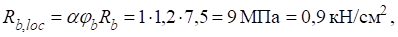 Rb,loc – расчетное сопротивление бетона смятию, определяемое по формуле