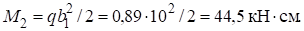 M1 = qa2/8 = 0,89 · 14,452 / 8 = 23,23 кН·см.