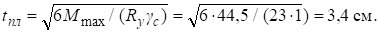 По наибольшему Mmax из найденных для различных участков плиты изгибающих моментов определяем требуемый момент сопротивления плиты шириной 1 см: