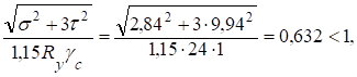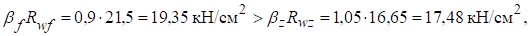 βfRwf = 0,9 ∙ 21,5 = 19,35 кН/см2 > βzRwz = 1,05 ∙ 16,65 = 17,48 кН/см2,