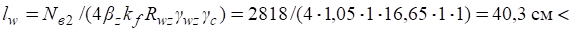 где lw1 = l w2 = h – 1 = 40 – 1 = 39 см – расчетная длина одного шва.