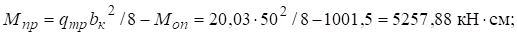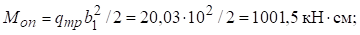Mк1 = Fa1bо/4 = 1639,2 · 15 / 4 = 6147 кН·см,