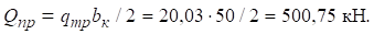 Qk1 = Fa1/4 = 1639,2 / 4 = 409,8 кН.
