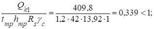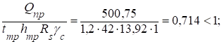 τ = Qk1/(tтрhтр) = 409,8 /(1,2 · 42) = 8,13 кН/см2.