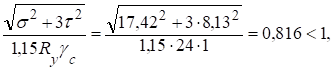 где Ry = 24 кН/см2 – расчетное сопротивление стали С255 при толщине