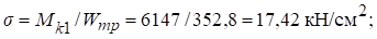 где σ = Моп/Wтр = 1001,5 / 352,8 = 2,84 кН/см2;