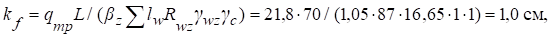kf2 = F2/(2βz lw2 Rwzγwzγc) = 1125 / (2 ∙ 1,05 ∙ 39 ∙ 16,65 ∙ 1 ∙ 1) = 0,83 см.