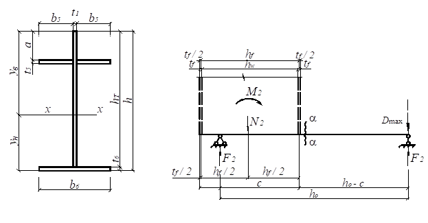 Проверку напряжений в опорном сечении одностенчатой консоли допускается производить в предположении, что изгибающий момент воспринимается только полками, а поперечная сила – стенкой.