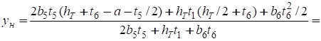 Ix = t1hТ3/12 + hТ t1(hТ /2 – yн)2 + 2b5t5(ув – a – t5/2)2 + b6t6(ун – t6/2)2 =