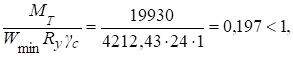 τw,М = М/Ww = 28000 / 1915,42 = 14,62 кН/см2.