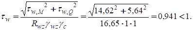 τw,Q = Q/Aw = 800 / 141,8 = 5,64 кН/см2.