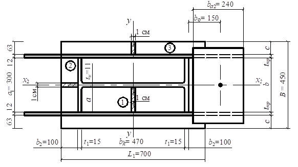 b = bк = 470 мм; а = (b2 – tw)/2 = (300 – 11) / 2 = 144,5 мм;
