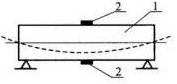 1 - испытуемый образец; 2 - пьезопреобразователи