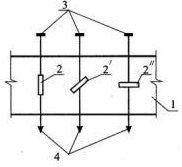 1 - просвечиваемый элемент; 2,2', 2" - различные ориентации дефекта;