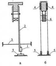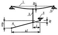 2. При недоступности или большом расстоянии до неподвижных точек, а также с целью исключения влияния осадок опор на практике достаточно часто применяют систему шпренгелей. В частности, на рис.9а показан подвешенный проволочный шпренгель, который оттягивается вниз вертикальной проволокой с пружиной, обеспечивающей практическое постоянство натяжения шпренгеля и тем самым требуемую неподвижность точки крепления рабочей проволоки 4 и прогибомера 3.
