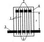 От этого недостатка свободны беспетлевые тензорезисторы (рис.21б) с низкоомическими медными перемычками. Из-за отсутствия поперечной тензочувствительности и лучших условий передача деформа­ций (ввиду продолжения прямолинейных участков тензорешетки и за перемычки) база их может быть уменьшена до 2.. .3 мм.