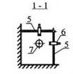 Рис 25. Конструктивная схема прямого отвеса: 1 –исследуемое сооружение; 2 - марка с горизонтальной шкалой; 3 - отвес в сосуде с маслом; 4 - кронштейн для отвеса; 5 - линейная шкала; 6 - микроскоп; 7 –струна.