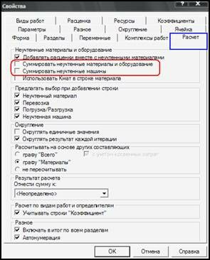 Рис. 1.5.3. Свойства таблицы затрат раздел «Расчет» / «Параметры»