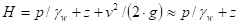 где  - пьезометрическая высота (з – давление в воде;  – удельный вес воды);  – высота рассматриваемой точки над некоторой горизонтальной плоскостью сравнения; /() – скоростной напор (– скорость движения воды в потоке; – ускорение свободного падения).
