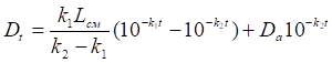 где Dt—дефицит кислорода в водоеме по прошествии времени t;