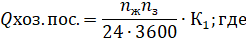 Расход воды на хозяйственно-бытовые нужды Qхоз, л/с слагается из расхода воды на приготовление пищи, на нужды санитарных устройств, на питьевые потребности,