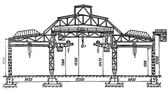поддерживающим пути мостовых кранов. Основным несущим элементом каркаса  стала  поперечная  рама  (рис.5).