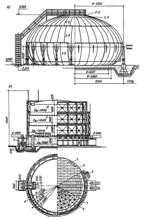 б) газгольдер мокрый