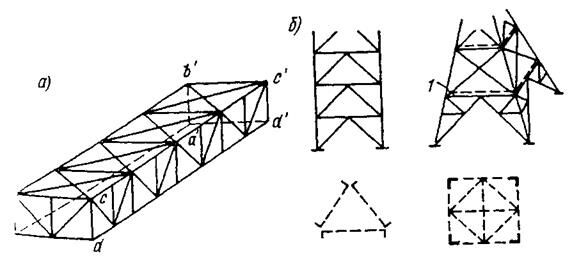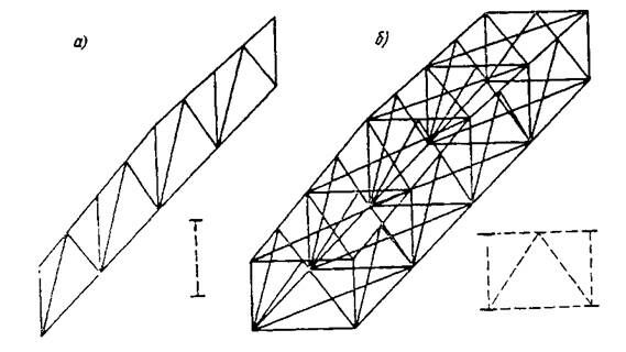 Рис. 9.1. Плоская (а) и пространственная (б) фермы |