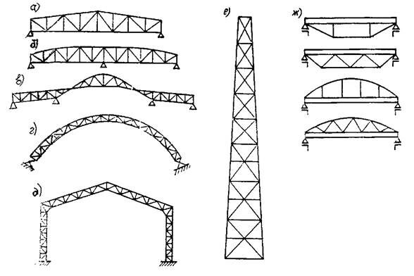 В настоящее время унифицированы геометрические схемы стропильных ферм производственных зданий, мостов, радиомачт, радио башен, опор линий электропередачи.