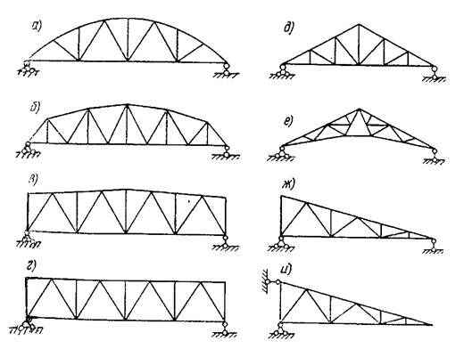 с восходящими раскосами; г – раскосная с нисходящими раскосами;