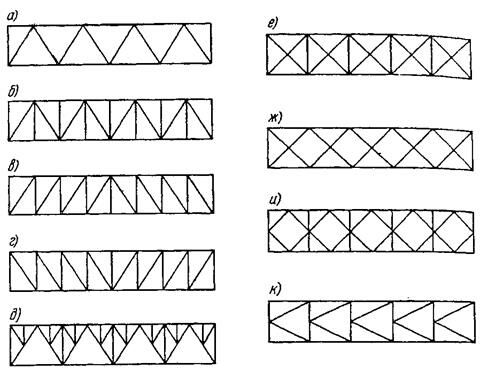 д – шпренгельная; е – крестовая; ж – перекрестная; и – ромбическая;