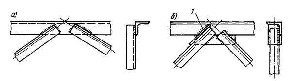 а – с непосредственным примыканием; б – со сплющиванием концов стержней;