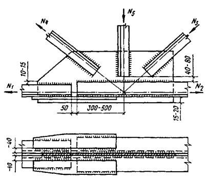 накладки, увеличивается на 10%. Фасонки следует принимать достаточно толстыми, не меньше толщины скрепляемых элементов.