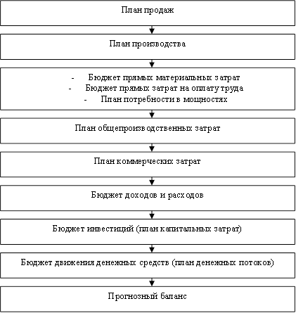 Технология оперативного планирования, то есть перечень используемых планов (бюджетов) и последовательность их составления, в ее "классическом" виде представлена на рис. 1.