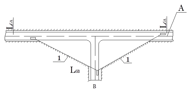 Рис. 4.1. Схема видимости на пересечении: LбА, LбВ – на автомобильных дорогах А и В;