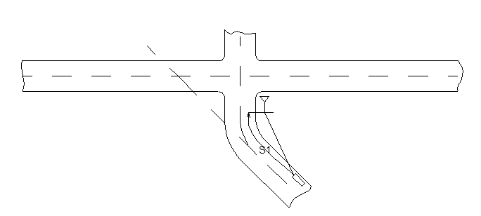 1. Наносят оси пересекающихся дорог и полосы движения по основной дороге (см. рис. 4.12, 4.13).