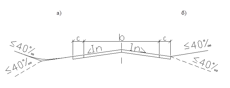 Рис. 4.7. Проектная линия второстепенной дороги: а) III категории; б) IV - VI категорий;