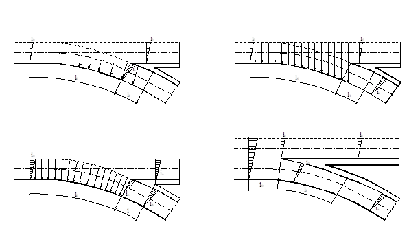 На участках отмыканий и примыканий соединительных ответвлений длина переходной кривой определяется возможностью отгона поперечного профиля проезжей части.