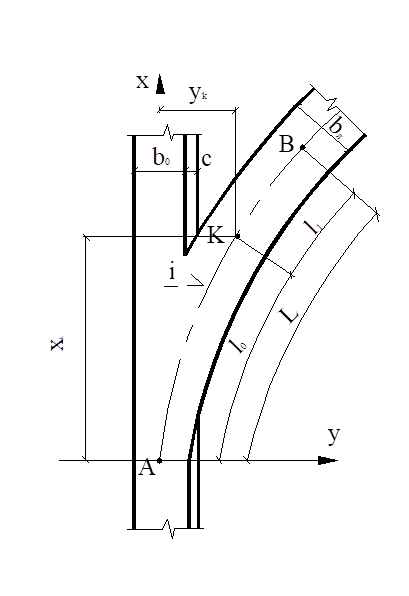 Рис. 7.2. Схема к определению длины переходной кривой и точки К