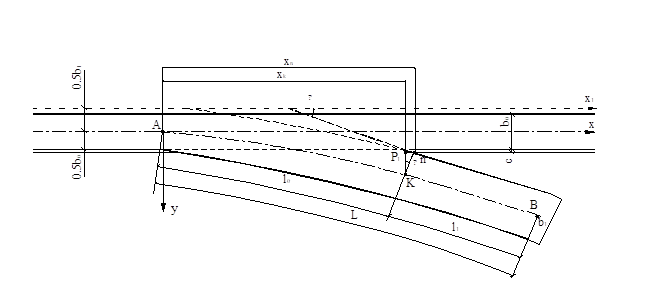 Для размещения отгона поперечного профиля на части соединительного ответвления от точки К до точки В (рис. 7.2) должно выполняться условие: