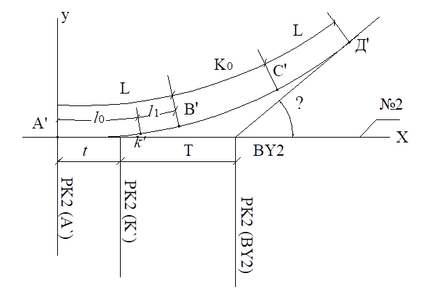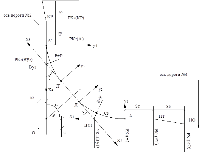 где РК2(ВУ2) – пикетное положение ВУ2 на дороге № 2, определяется по (8.28);
