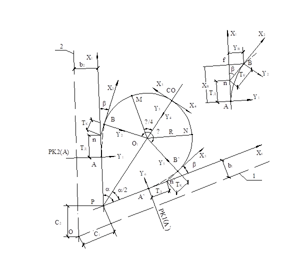 РК2(К`) = РК2(ВУ2) ± (T + t - Хк), (8.32)