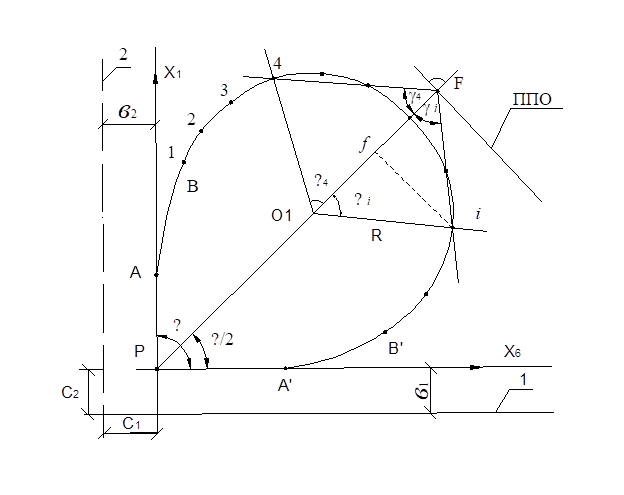 РО1 = (Ув + R∙ cos β) / sin(α/2) , (8.9)