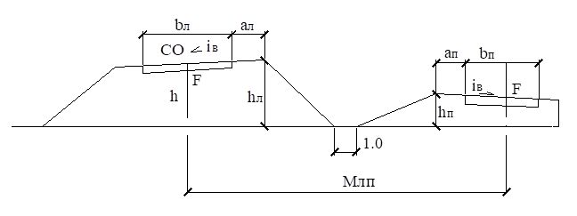 m1 – заложение откоса ЛПО, зависит от высоты откоса hл;