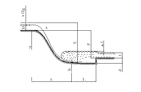 Расчет перепадного колодца в виде водослива практического профиля сводится к определению глубины и длины водобойного колодца. Расчет производится с использованием следующих зависимостей. Определяется сжатое сечение hс в нижнем бьефе у основания водослива: