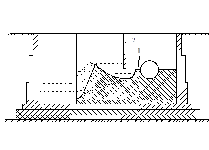 Ливнеспуск с боковым водосливом и полупогруженным щитом состоит из лотка, внешняя стенка которого является водосливом и дополнительного лотка с полупогруженным щитом (рис.40).
