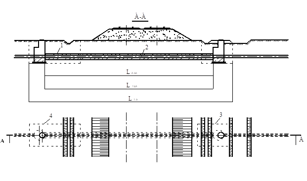 Рис.43. Схема пересечения самотечного трубопровода под железной дорогой на насыпи.