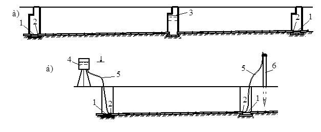 Устанавливая подвижную визирку в любой точке траншеи между неподвижными визирками, просматривают линию визирования по трем визиркам. Таким образом, проверяют глубину разработанной траншеи и правильность укладки каждой трубы.
