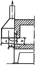 Зонт следует делать с центральным углом раскрытия не более 60о; при больших углах резко увеличивается площадь, занятая вихревыми зонтами у острых кромок, и соответственно уменьшается «эффективно всасывающая площадь» приемного отверстия. При больших углах раскрытия зонта достичь эффективного всасывания по всей его площади можно путем устройства уступа (рис.9.2).